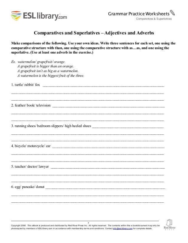 This worksheet provides exercises for using comparative and superlative forms with all types of adjectives. The comparative and superlative of adjectives (b&w version comparative and superlative adjectives level: Use it with 3rd grade core standards conventions of standard english or with other grades as needed.
