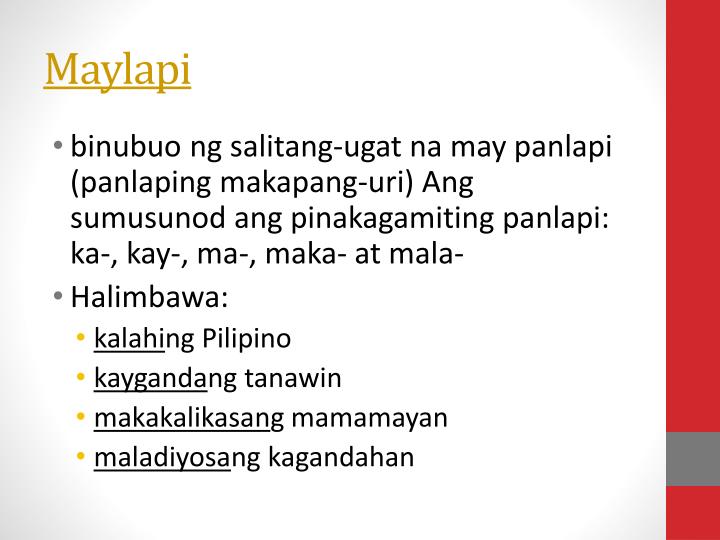 Ang pandiwa ay bahagi ng pananalita na nagsasaad ng kilos o galaw, isang pangyayaring naganap, o isang katayuan. Some of the worksheets displayed are panlapi at salitang ugat, salitang ugat at maylapi, filipino baitang 3 ikaapat na markahan, prime and composite, uri ng mga salita ayon sa kayarian, filipino baitang 7 ikatlong markahan, round numbers 0 10 to the nearest 10, paaralang de la salle santiago. Unlapi (panlaping makikita sa uanahan ng salita) halimbawa: