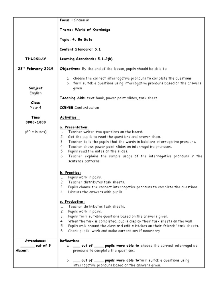 View Interrogative Pronouns Worksheets Grade 4 Pdf